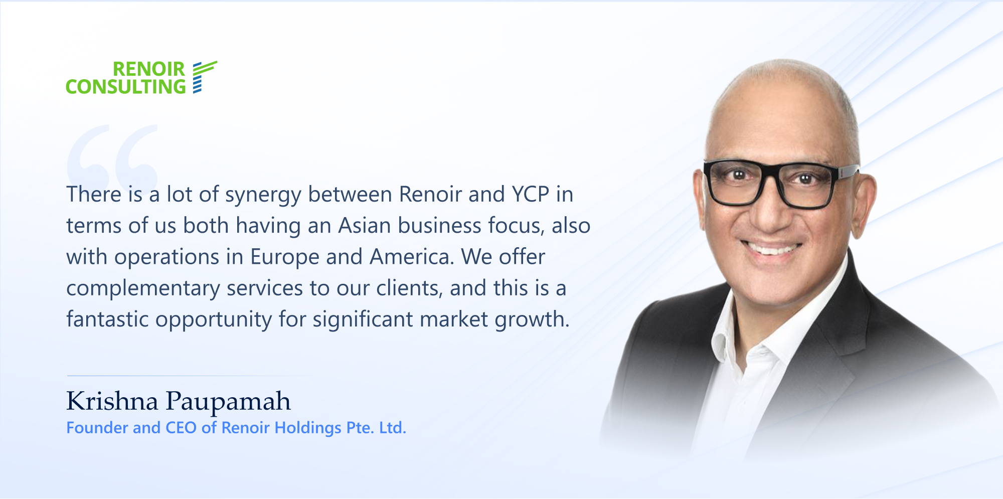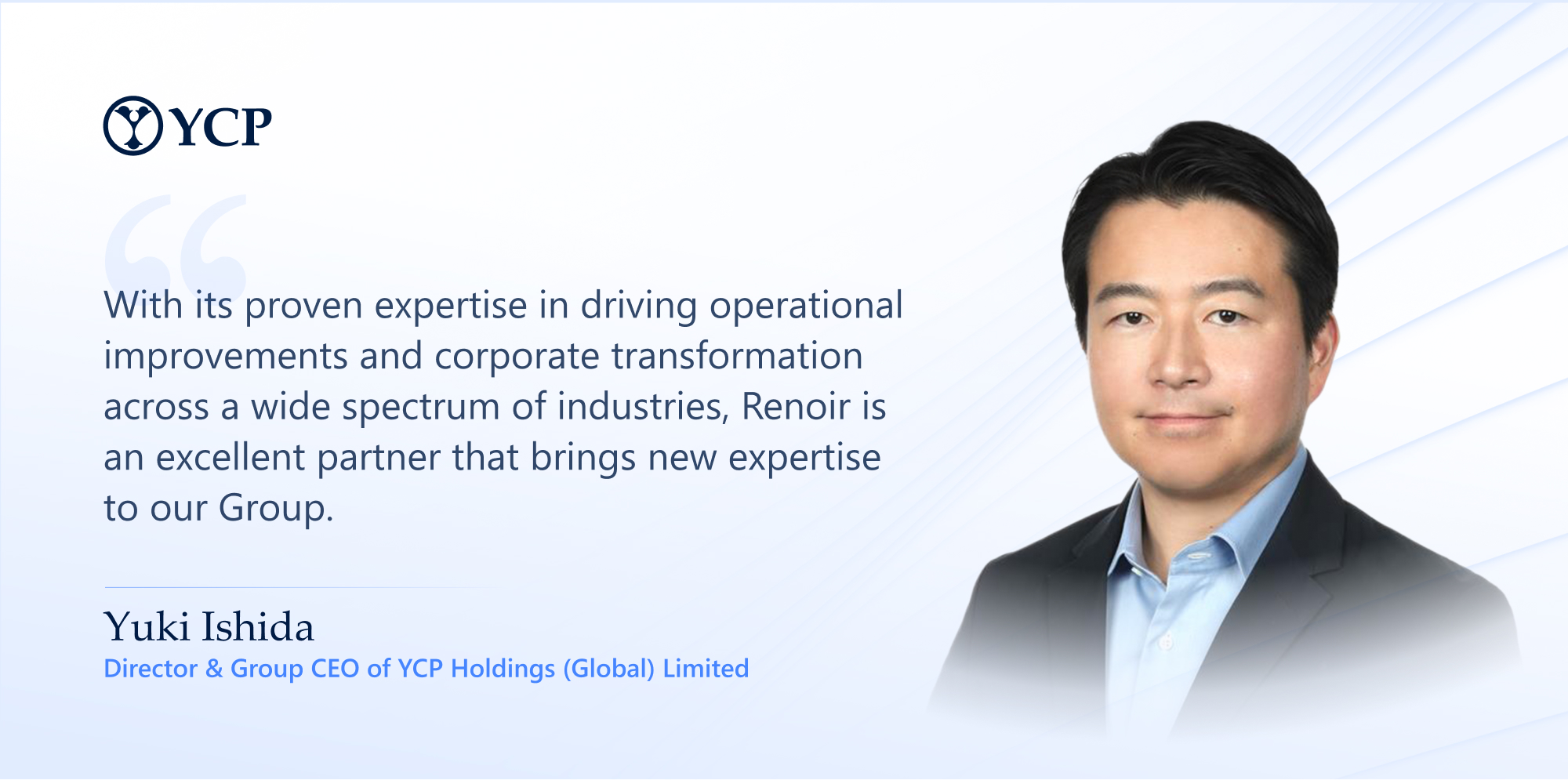 2025年10月、YCPホールディングス(本社:シンガポール、取締役兼グループCEO :石田裕樹)は、アジアを中心に業務の収益性改善を支援する独立系ファームRenoir Holdings Pte. Ltd. (以下、「ルノワール社」または「ルノワール」と言います。)の発行済株式を100%取得し完全子会社化する契約を締結しましたのでお知らせいたします。